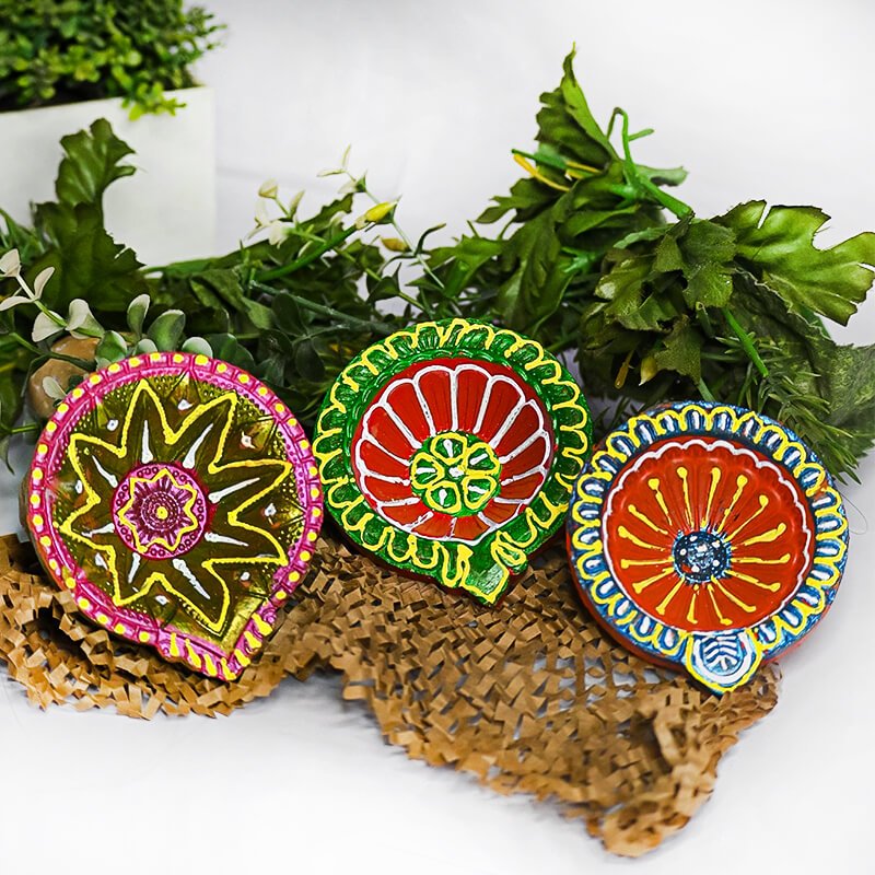 Ekumang Foundation Colorful Handmade Clay Diyas (Set of 3)